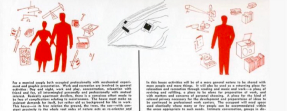 En el artículo de “¿que es una casa?” Charles Eames reflexionaba sobre la casa, ya que él consideraba que esta era una necesidad humana,y además expone su idea de que no entendía cómo en esta no se llegaban a introducir las nuevas tecnologías y los nuevos desarrollos de construcción y la gente seguía haciéndolas de la manera más arcaica y vernacla que conocían, es decir que no veía una evolución que desde su punto de vista debía haber en las viviendas. El también propone la implantación de los nuevos avances en las casas para poder producirlas de una manera más efectiva para que pudieran llegar a todas las personas de una manera más económica.